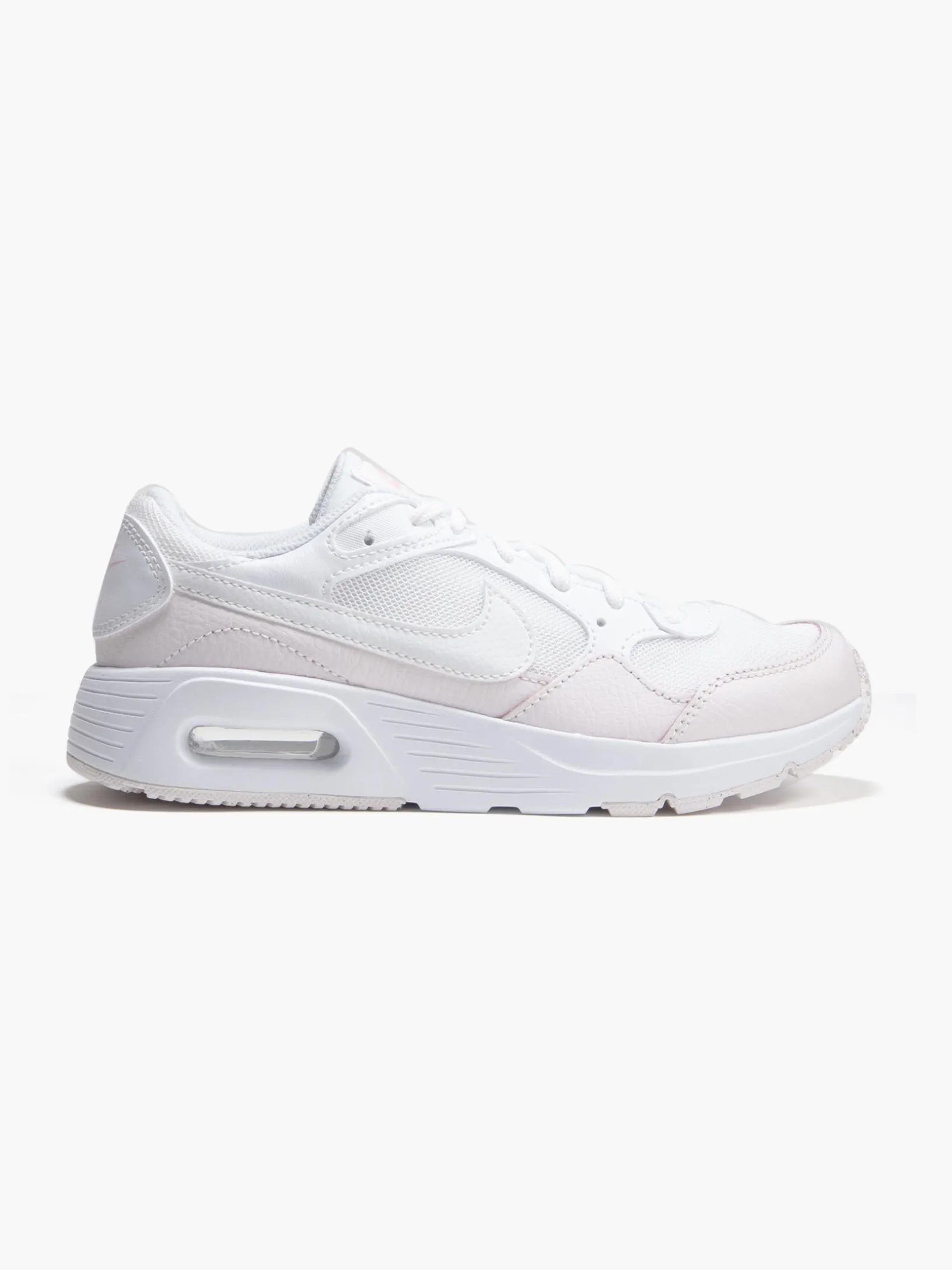 Enjoy the classic comfort and timeless style with the Teen Girls Nike White/Pearl Pink Air Max SC Trainers. These trainers feature a pristine white leather and mesh upper, accented with subtle pearl pink details that provide a gentle contrast. The iconic Nike Air Max cushioning is visible in the heel, offering a supportive bounce and a signature look. The low-top design ensures a nonrestrictive fit around the ankle, while the padded collar adds extra comfort. With a durable rubber outsole that provides excellent traction, these Air Max SC trainers are designed for all-day wear.