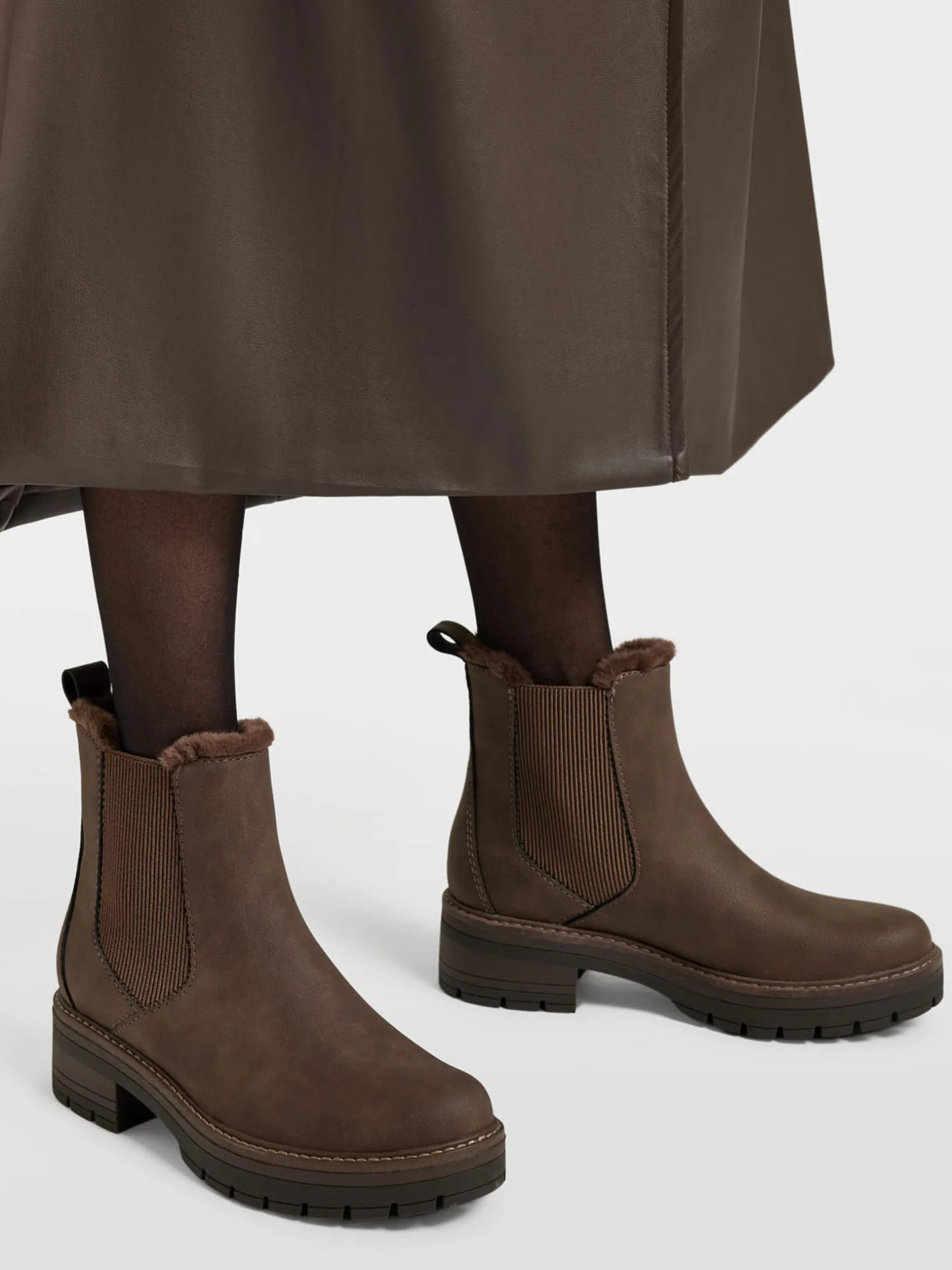 Brown Imitation Faux Fur Chelsea Boot