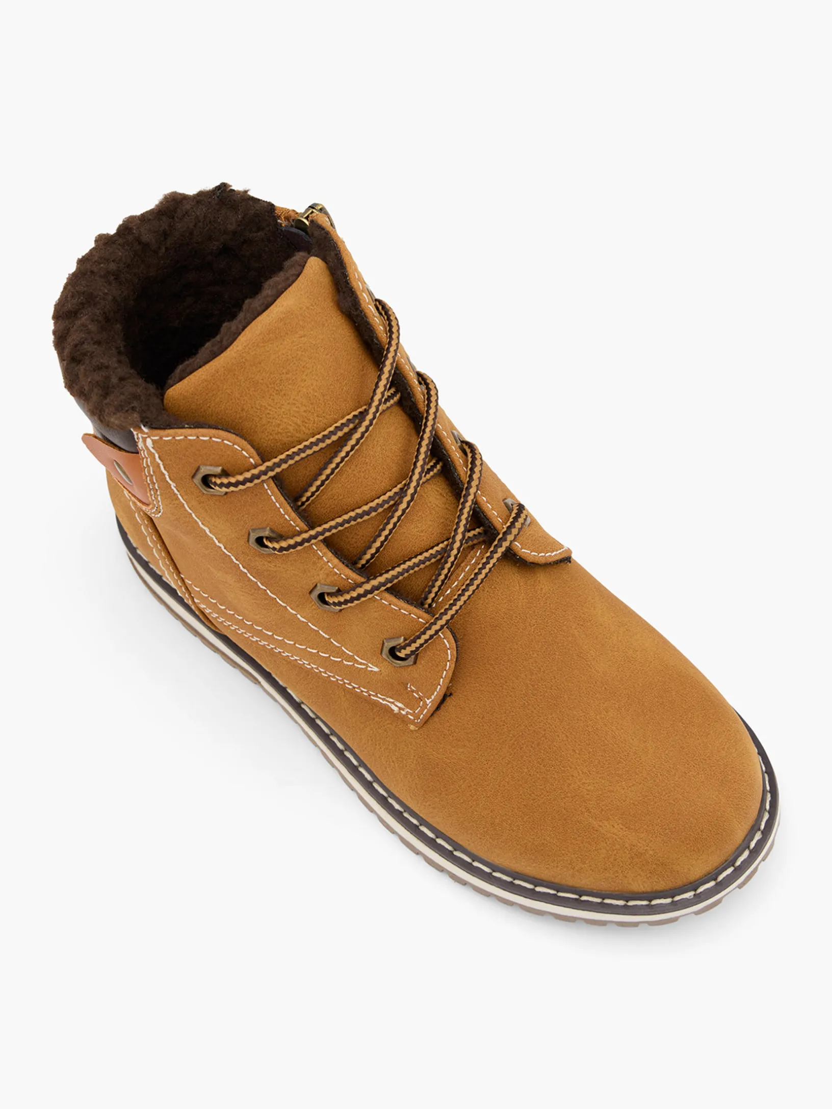 Beige and Brown Fur Trimmed High Leg Boot with Contrasting Lace